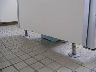学校の女子トイレ、パーテーションを支える足が曲がってしまい扉が閉まらなくなってしまった。