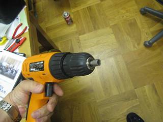 それを電動ドリルドライバに取り付けて使ってみる。