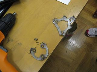 もう一つも、同じ方法でやったが、こちらの方がなかなか抜けず、下敷きの木に逃げる分の穴を開けてからきちんと安定させた上で、ボルトの内側ぎりぎりのドリルを使って穴を開けたら、うまく外すことができた。(少しネジの山を削ってしまったものの、はめてみたらしっかり固定できた)