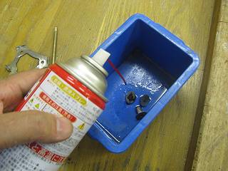 とりあえず、浸透性のオイルスプレーをかけてから作業する。
