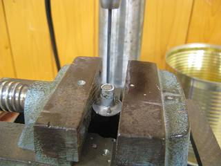 とりあえず、また潤滑剤をスプレーする。その後、ボール盤で穴を開けることにした。