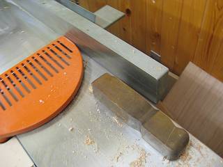 手押しかんな盤で基準面を出して、帯のこと丸鋸でガイドを作る。