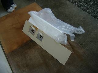 位置決めと周りのマスクのために、合板に取り付ける。