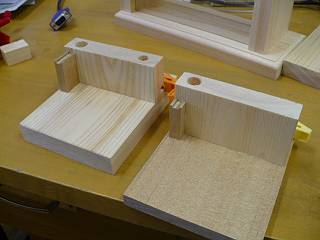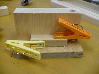 大きな変更点は、下に引く板を20mm厚のひのき材から12mm厚のアガチス材にしたことと、洗濯ばさみの固定のために溝ではなくブロック板にしたこと。