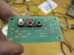 ここのオペアンプを取り付けるところにちょうどタクトスイッチが3つ並べられる。