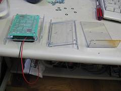 筐体にはアクリル板を曲げてカバーをつけ、そこへ差し込んで完成。