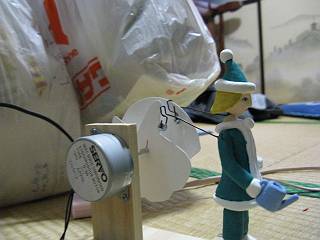 本来なら、サーボモータかステッピングモータと言うことになるのだけれど、今回は組み上がっていたので