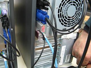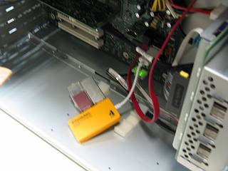 シンクライアントシステムにはUSBのキーが必要だけど、これは外に出ていると危険なので、内部ポートに接続してもらった。