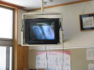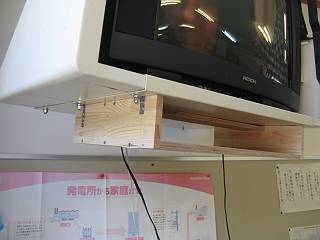 夏休み前最後の土曜日,クラブの生徒たちにテレビをラックに載せてもらった。