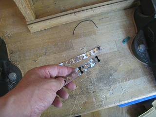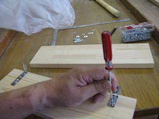 穴あき板を使ってステーにして,幅調整用のネジに共締めすることにした。