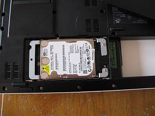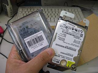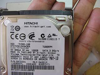 WDのHDD(120GB)が入っていたが,今回のは日立の160GB,あまり考えなかったが7200回転のモデルだった。
