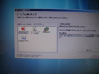 最初にトラブル解決ナビというのが起動してハード診断ツールでチェックした。問題はなかった。