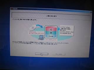 このモデルはリカバリCDがついていたので簡単に作業できた。