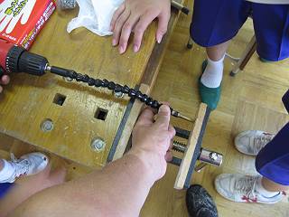 クラブの生徒たちに手伝ってもらったが,今年はスタビードライバーに加えて,電動ドライバー用のフレキシブルチューブを買ってきたのでずいぶん楽にできた。