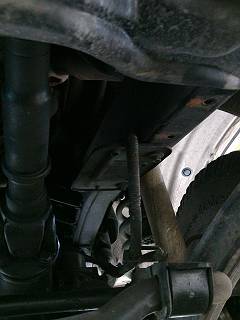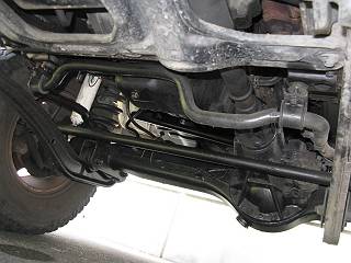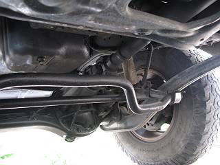 両側のリンクを外してスタビがぶら下がっているところ。