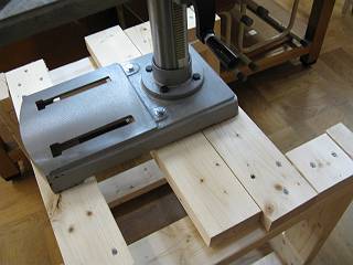 上の部分は前後に材を渡して構造体とし、固定用の穴の下にもう一本入れてボルトで留めた。