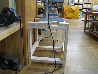 狭い技術室なので、今まで以前のボール盤があったところに今回のものを置いて、使うときは以前のもの(キャスターがついている)を横に動かして展開した状態で使おうと思う。
