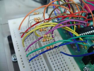 ・抵抗をブレッドボードで簡単に交換できるようにした。