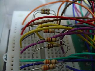 抵抗の位置からジャンパー線を引き出して、ブレッドボードに抵抗をさすことにした。
