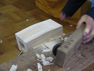 最初はかんなで削っていたが、大きなところはのこぎりで落とすことにした。