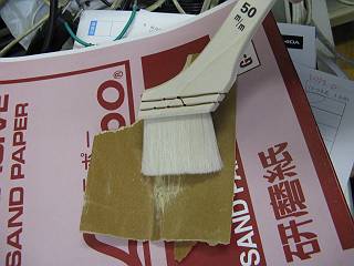 新しい刷毛をおろし、抜け毛をとってからサンディングシーラーを塗装して耐水ペーパーで下地を作る。