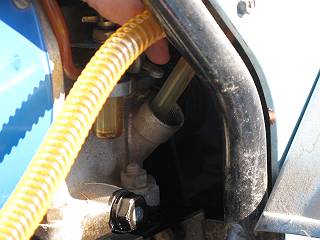 オイル排出中。初めて市販の廃油処理箱を買ってみた。排出口の上にある水抜きタンクが空なのはここもクリーニングしたため。