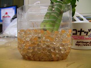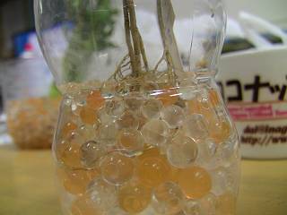 先日100円ショップの高分子ポリマーを使って水耕栽培を始めてから3週間が過ぎた。