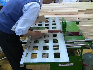 先日納めてもらった今年の1年生用の木材、木曽檜。横着して作業着を着ずに機械で切断。生徒には見せられない姿。