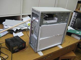 冷却器は余っていた(もう古くて使えないPCの)パソコンケースに組み込んでみた。