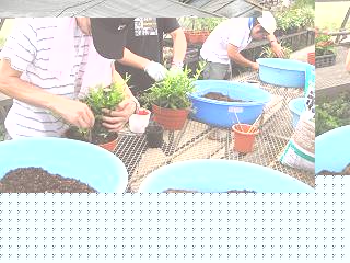教室に飾れるものと言うことで,好日性ではない観葉植物を3つ植木鉢に移す。