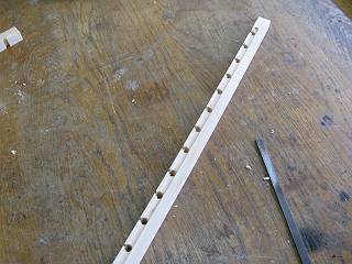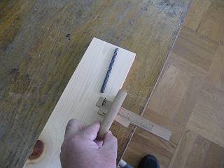 穴あけ後、トリマーで溝をひいてコネクタが収まるようにする。あまり木で確認用にサンプルを作る。