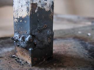角パイプの元が切れている。かなりの力が加わったのだろうけれど、何があったのやら。