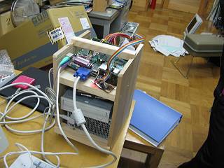 そこで,こんな感じにサーバーラック?,いやいや,棚を作って納めてみた。