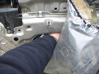しっかり直すのも一つだけれど、とりあえず内側から押せば回復するかと考え、内張を取り外す。