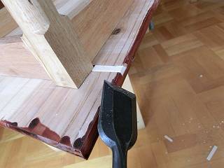 溝が抜けてしまっているので、カバーするために削った材を入れる。
