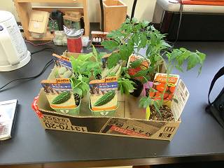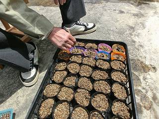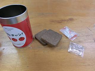 それを缶に戻して種をまいた。さてどんな感じに育つでしょうか。こちらは室内での管理。