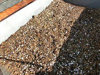 いったんトレイにあけて、根腐れ防止の石(ゼオライトかな)を混ぜて冷やす。