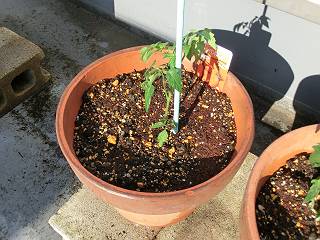 先日はプランターにしたトマトを植木鉢にも植えて比較するのと、緑のカーテンを試してみるためのゴーヤを植えた。