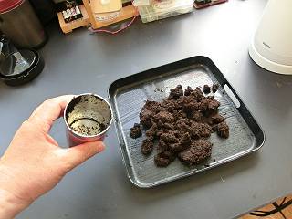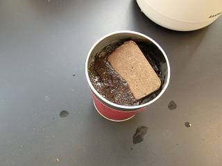 土はお湯を入れると一気に元に戻る。実は土を入れた状態でお湯を注がなければいけなかった。