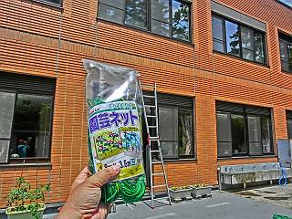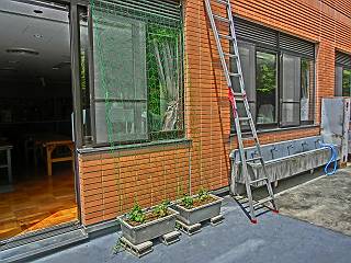 野菜を這わせるネットを設置