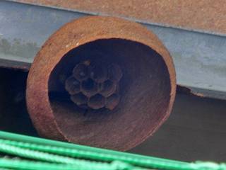 おまけ、窓の縁に大スズメバチが巣を作り始めた。受講者に何かあっても困るので、撤去しました。