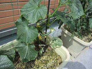 キュウリはそろそろ実ができはじめました。