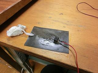 実は銅板がなかったので、真鍮板でやってみた。スイッチを押しても反応はするがタップには至らない。
