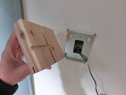 穴の縁ぎりぎりで縦びきをしてケーブルを差し込む溝を作る。