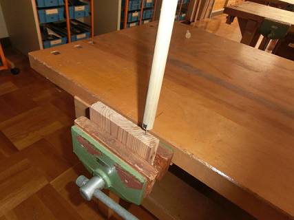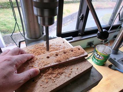 USBケーブルのフックは以前も製作しているので、同じ要領で。10mmドリルにてケーブルが通る穴を開ける。