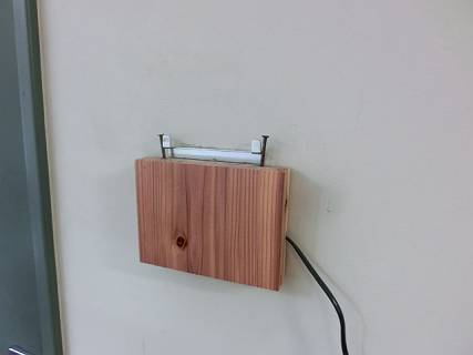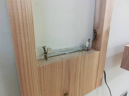 一応後から簡単に取り外せるように、下を引っかけて、上側に打ち込んだ釘と金具を針金で固定するような設計にした。