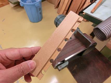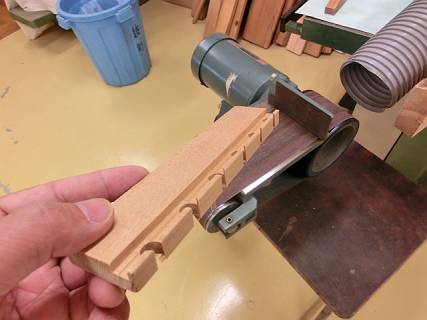 コネクタあ収まるように溝をひいてベルトサンダーをかけて形にする。