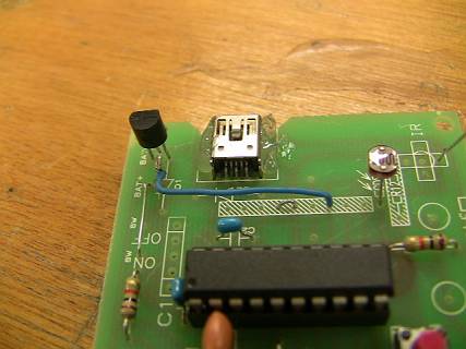これをココナッツのアナログ変換ポートにつないでみる。ここでは、赤外線センサーを外して代わりに取り付けた。