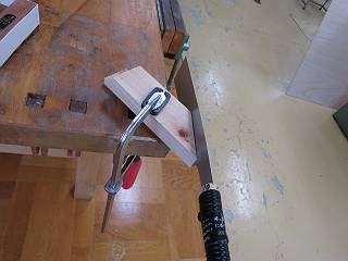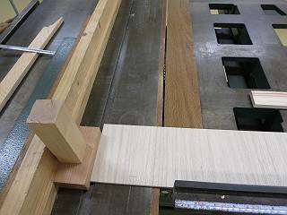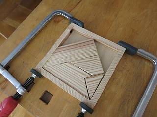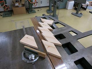 マイタゲージをつかって、ジグを製作。留め定規で45°を正確に出す。