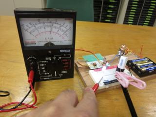 エネルギー変換効率に関わって、LEDと豆電球の消費電流(電力)を比べられるようにブレッドボードで実験する。